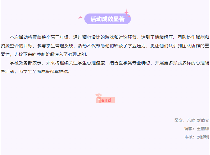 医校携手助成长:成医一附院护校高三心理团辅解压赋能