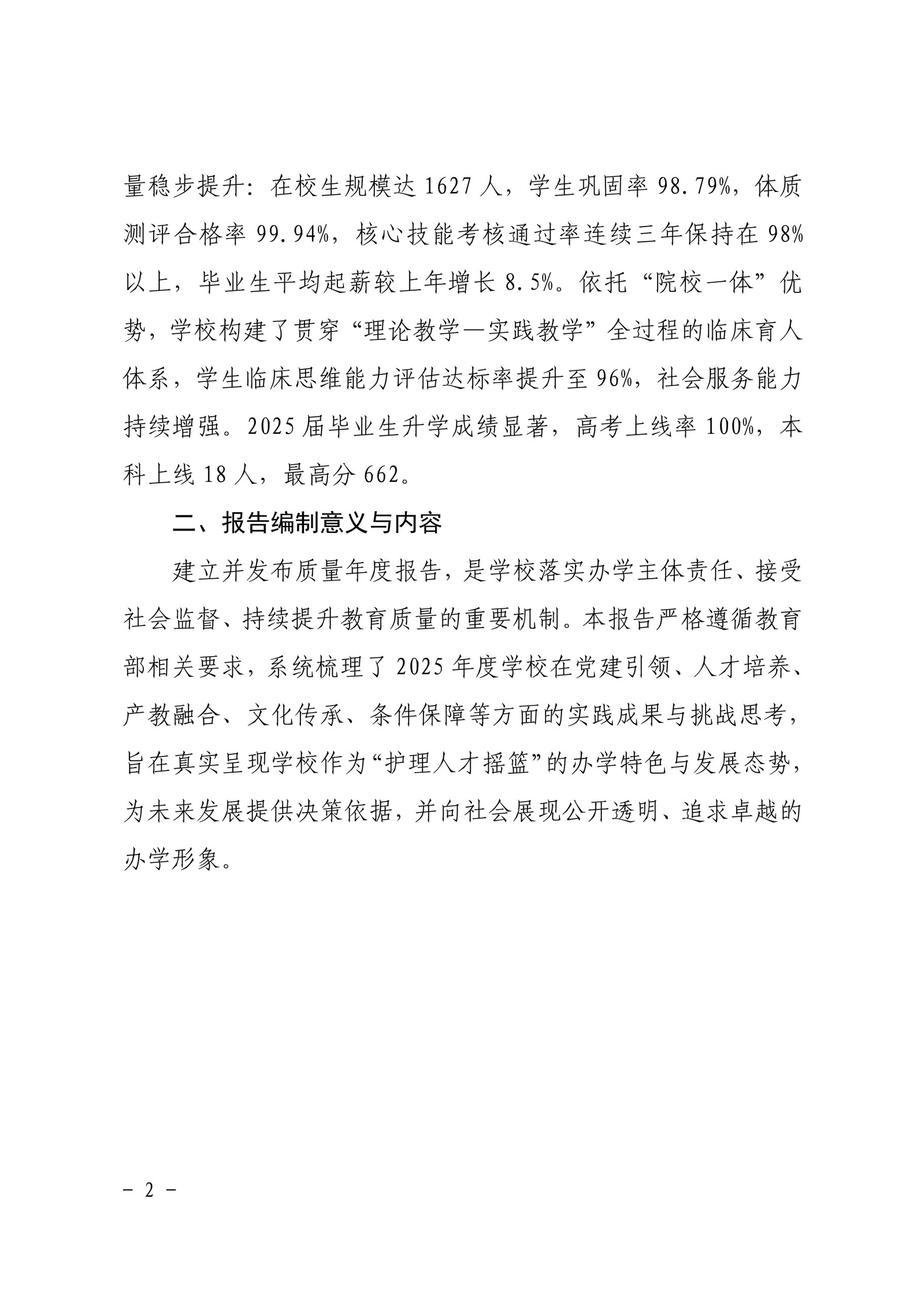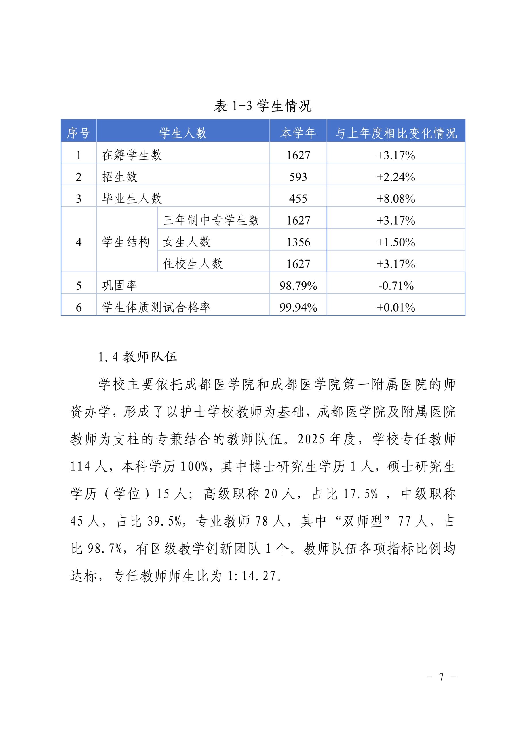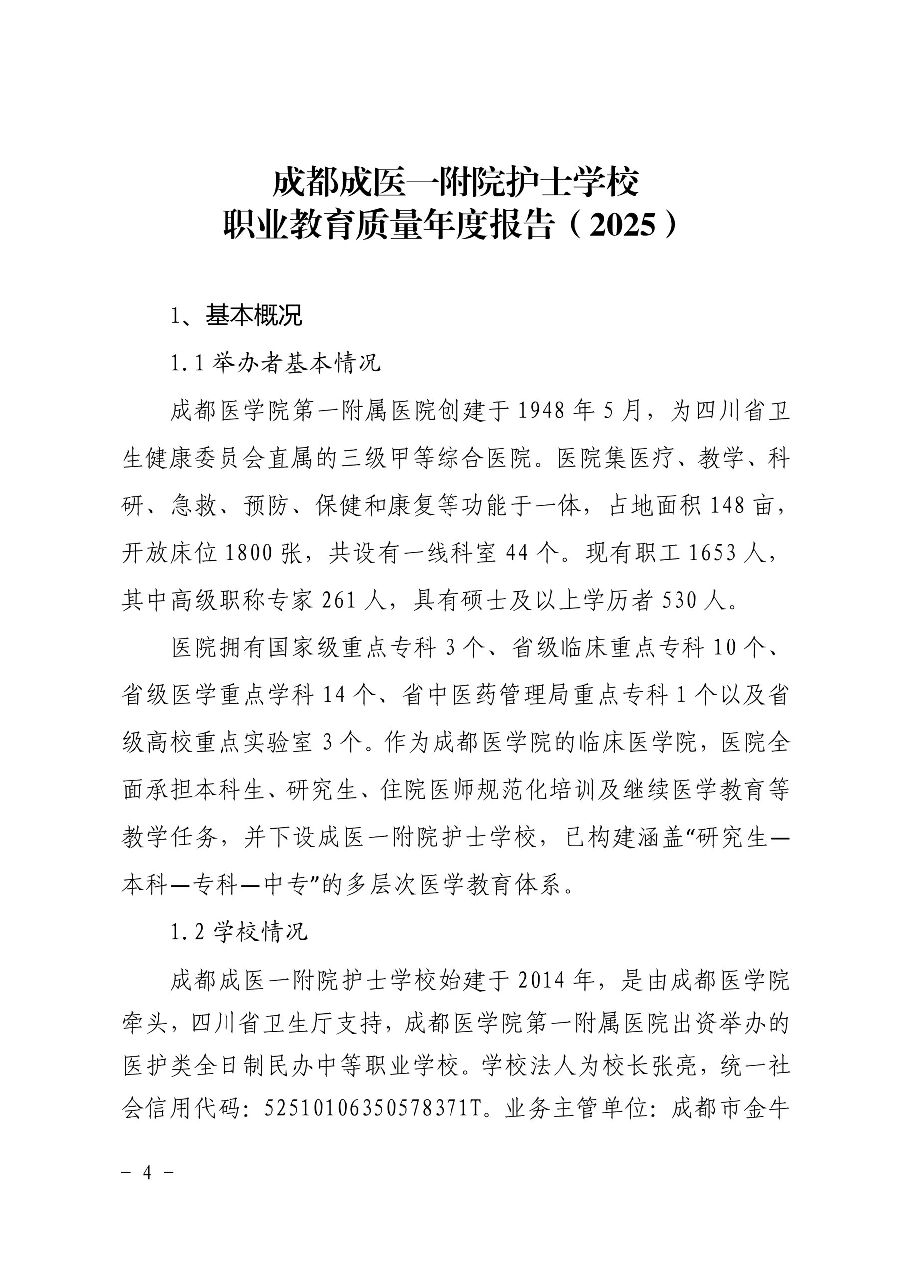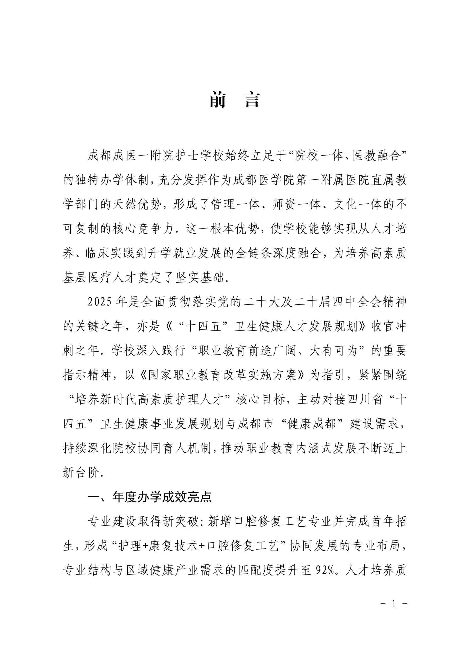 成都成医一附院护士学校职业教育质量年度报告(2025)