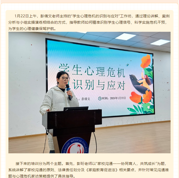 成都成医一附院护士学校心理委员专题培训:筑牢朋辈心理防线